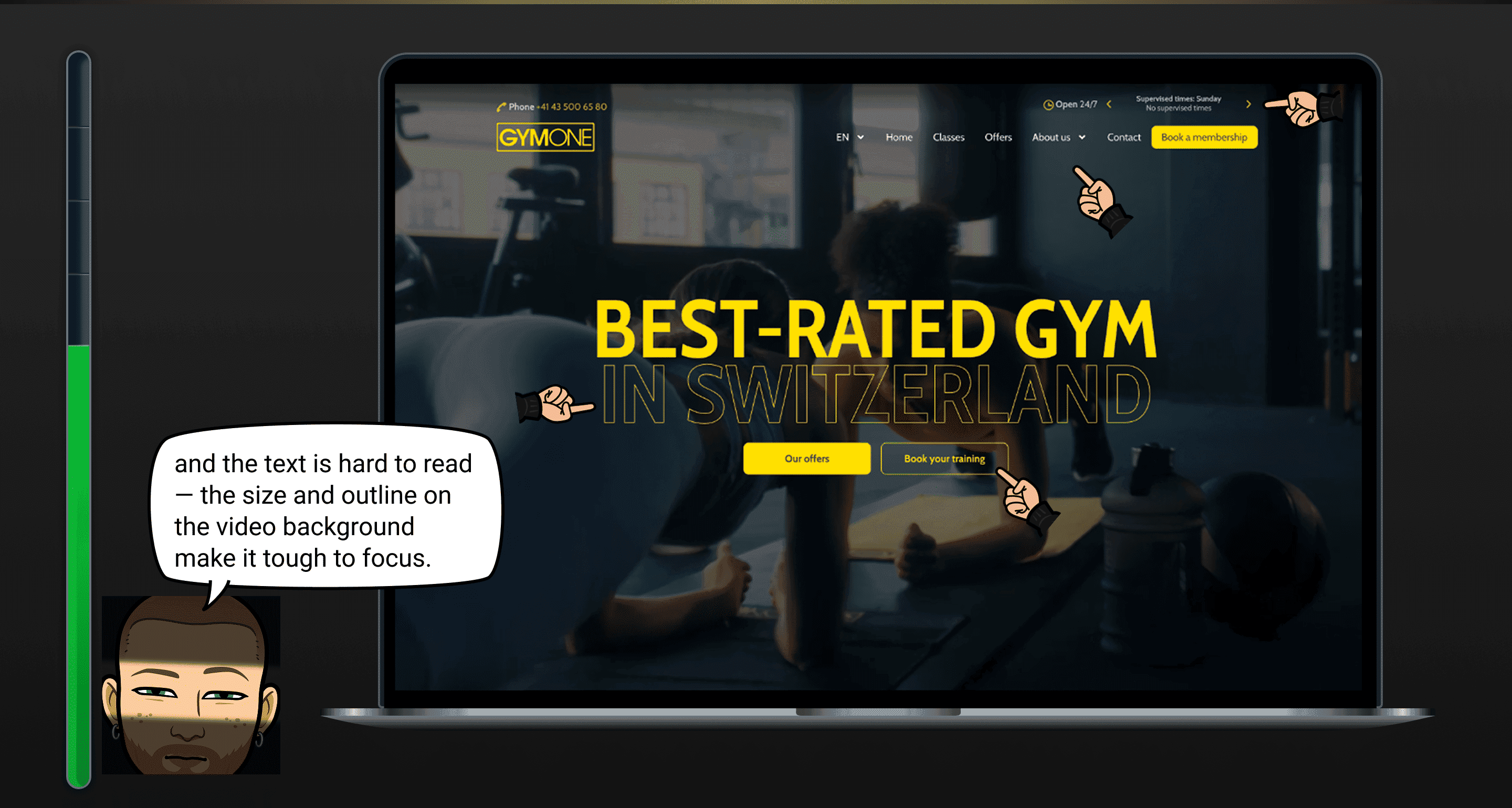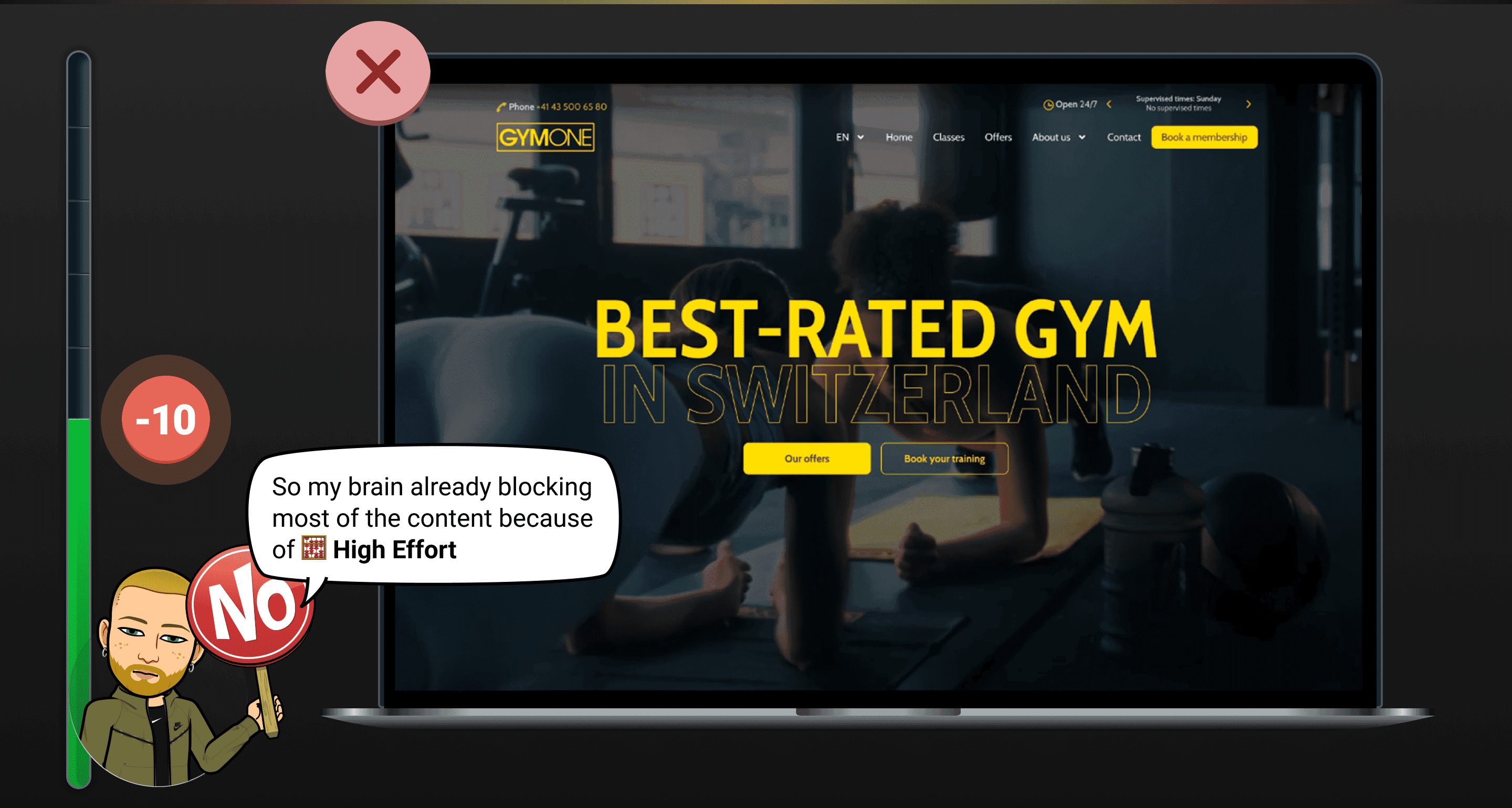 The homepage fails to clearly communicate the gym’s benefits and lacks social proof, making it harder for users to trust the brand.