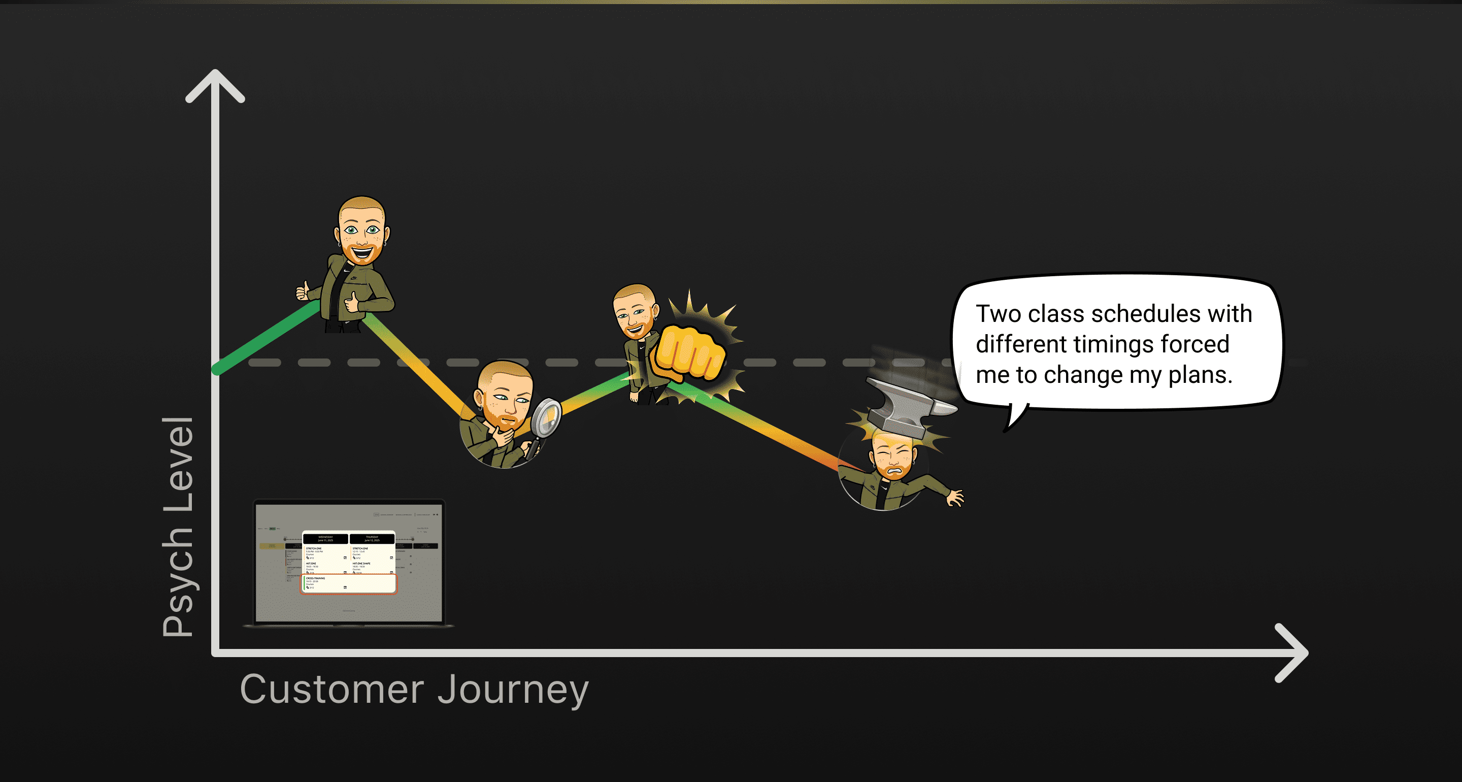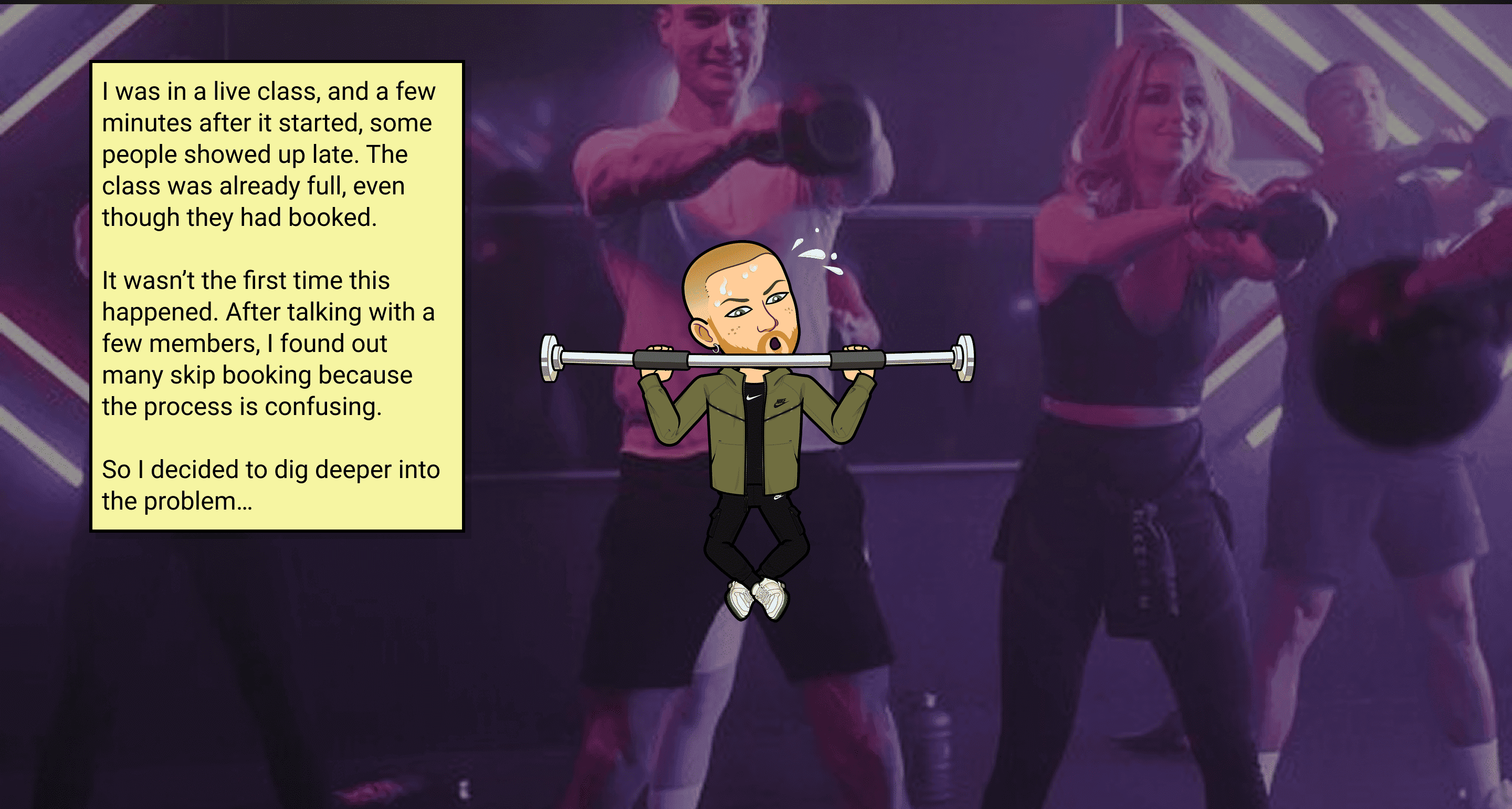 After analysing all the findings, it became clear that the system had serious usability issues causing users to drop off when trying to book a class. This directly explained why many people ended up showing up to classes without a booking, hoping for a free spot. Exactly the issue I noticed at the beginning of the project.
