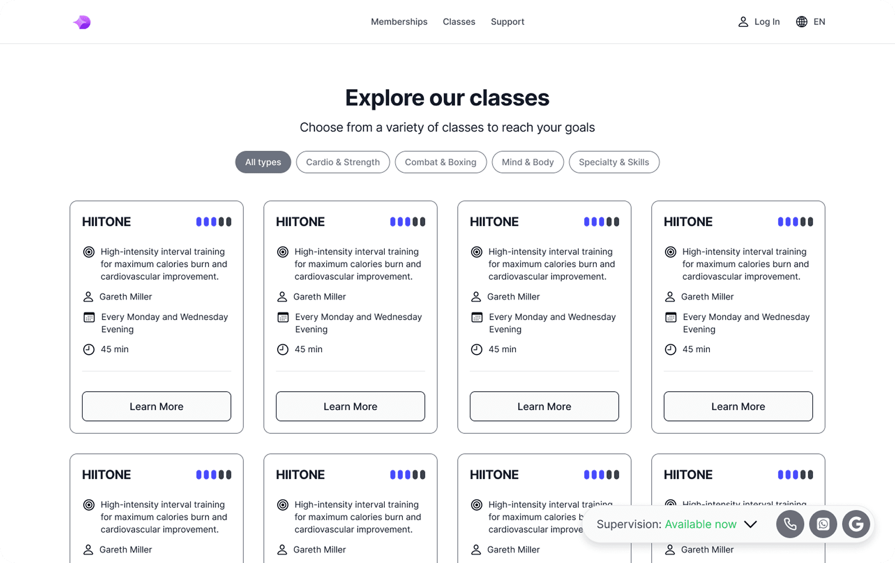 It was observed that 2 out of 2 participants were confused about the intensity level of each class. They mentioned that they didn’t know what it was referring to and that it should be more specific, for example cardio or weight intensity.