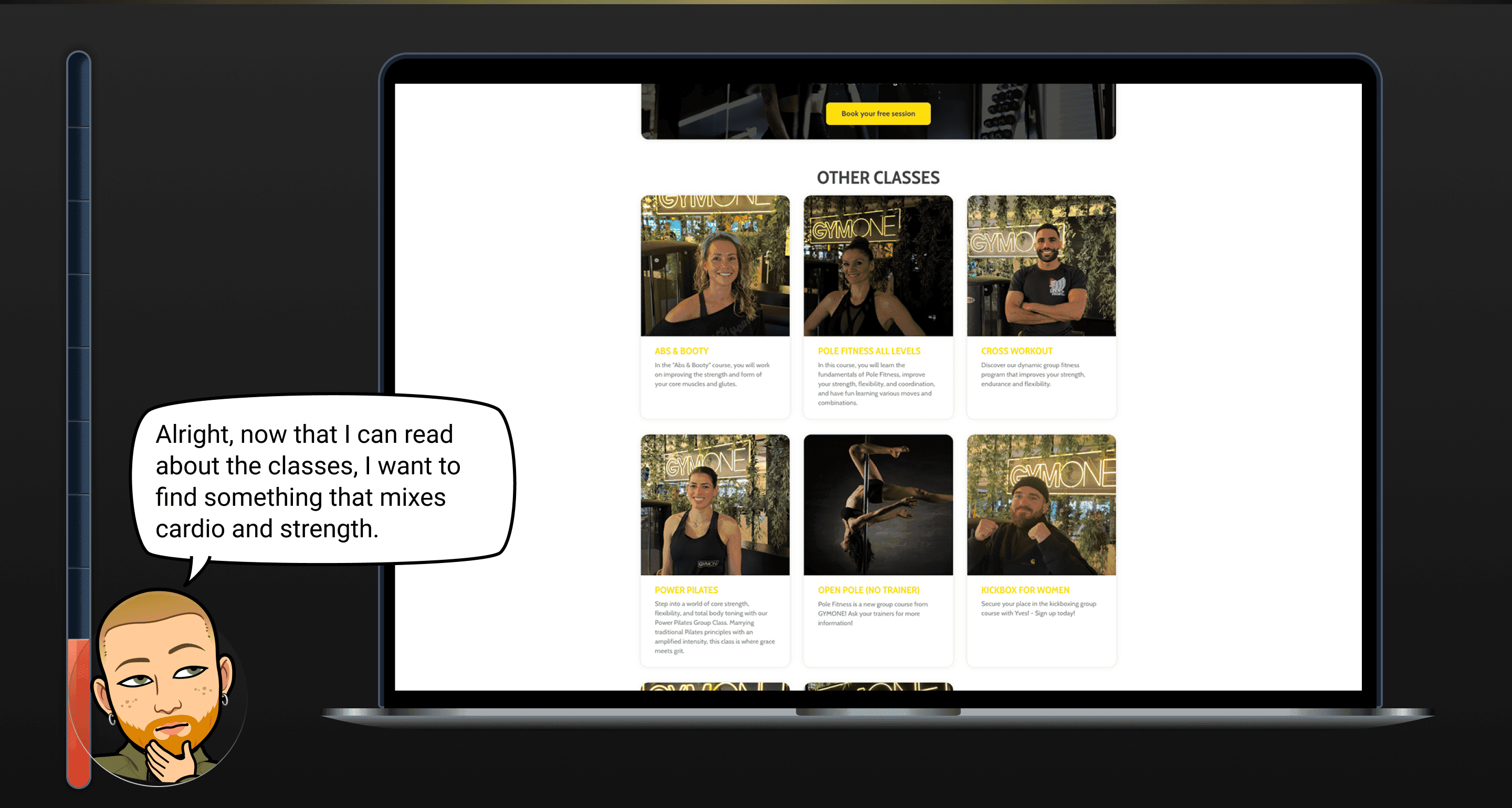 Re-design Gymones key features and improve website usability.